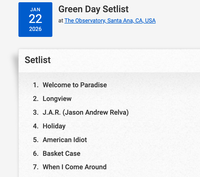 Indeed, Green Day, who are no strangers to raucus surprise club shows, notched another one up Wednesday (1/22) at The Observatory in Orange County, California.