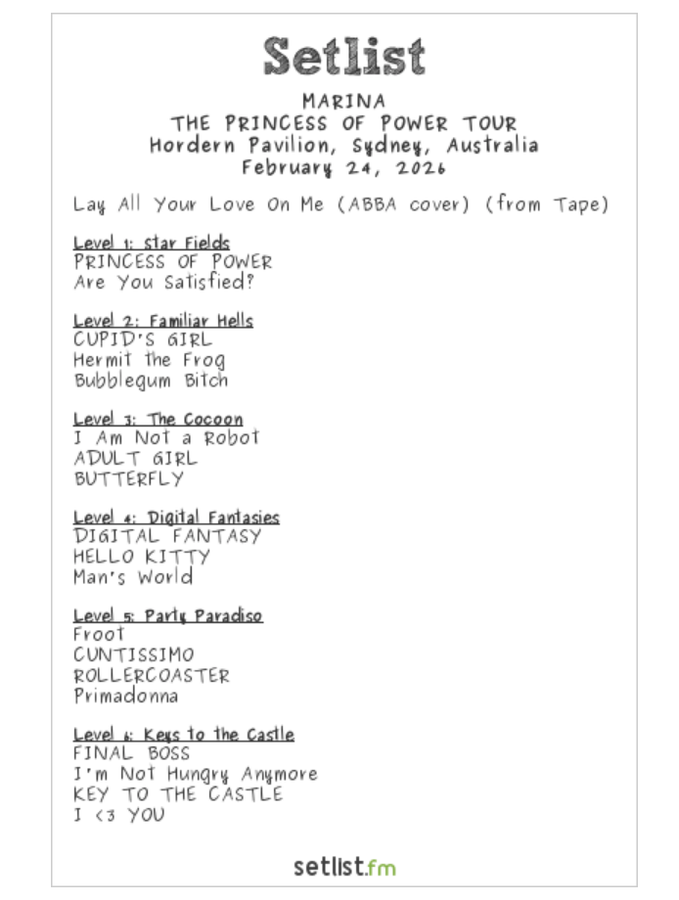 Of the songs she rocked in 2011, two, “Are You Satisfied?” and “I Am Not a Robot,” appeared again in the 2026 Sydney set. Satisfied?