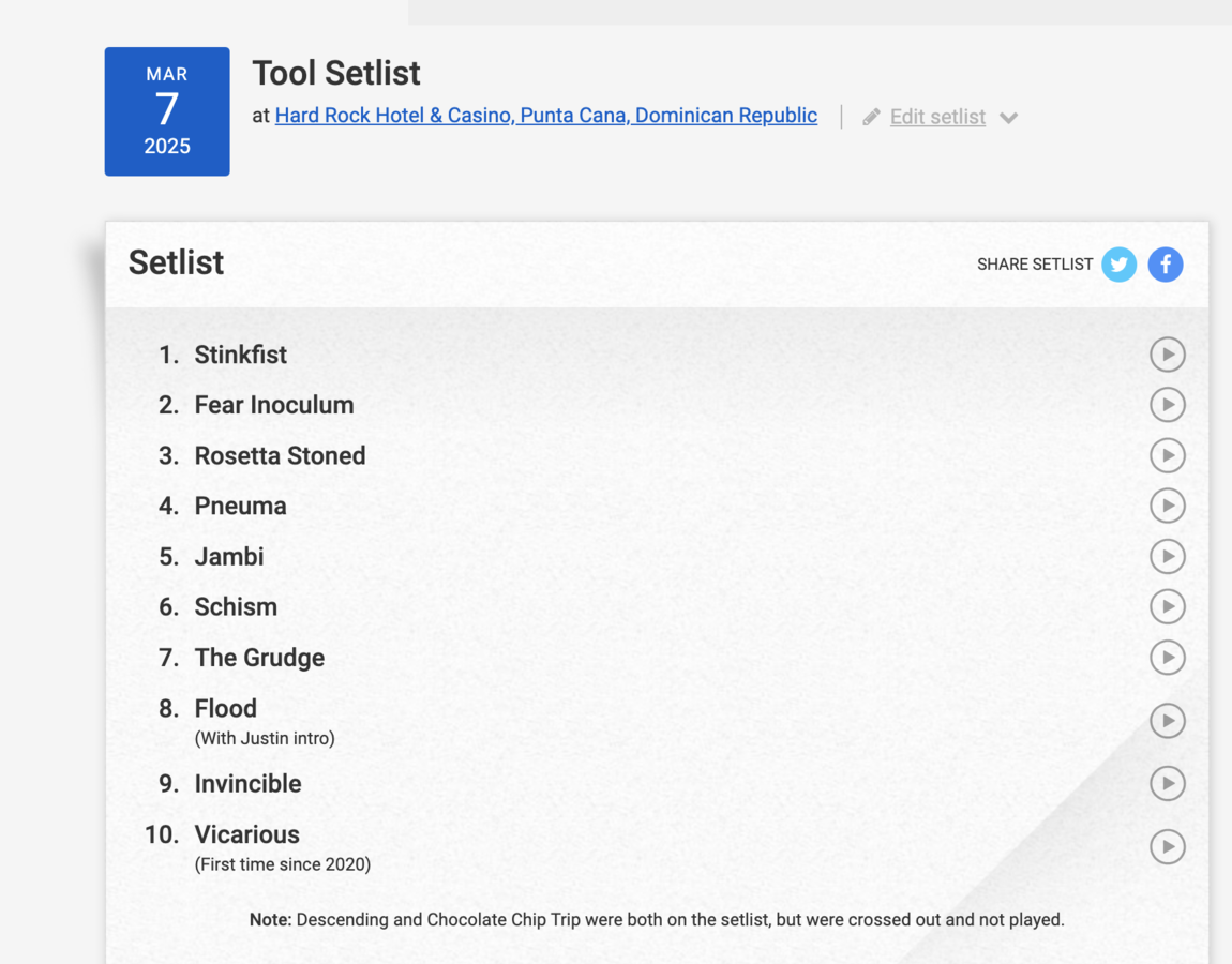 When Tool promoted the weekend they claimed there'd be unique setlists.