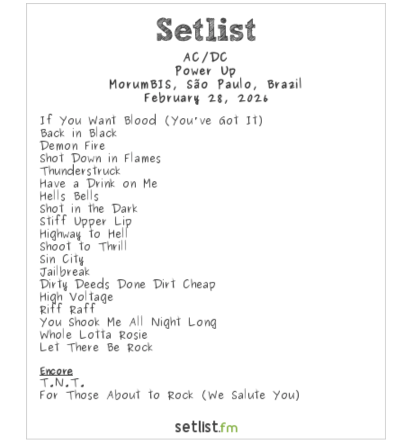 And those lucky Brazilians will have a third chance to see the 70-year-old guitarist and 78-year-old singer Brian Johnson and the rest of AC/DC on March 4.