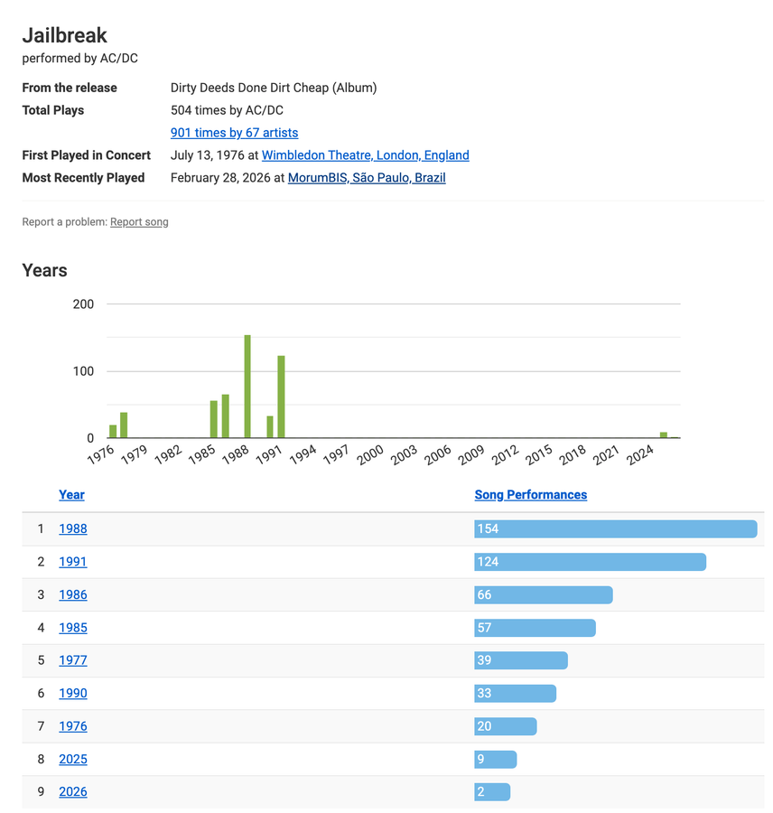 It's a banger they played 124 times in 1991 and then ignored until last year in Melbourne, Australia. It's nice to see them reunite with the Bon Scott-era rocker.