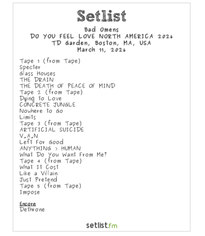 Bad Omens rocked the sold out TD Garden in Boston on Wednesday (3/11) as part of their Do You Feel Love North America 2026 Tour, a situation the music industry should be paying close attention to because it shows that not only is rock back with a vengeance, but now metalcore is drawing audiences that can pack in basketball arenas.