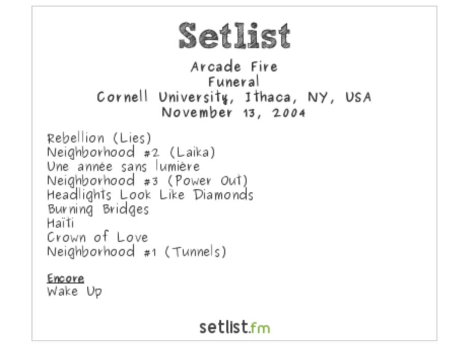 Arcade Fire, Cafeteria at Cornell University, 2004