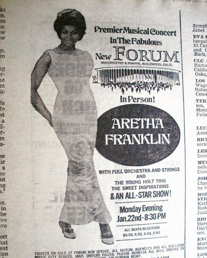 But decades before that, in January 1968, the Queen of Soul herself, Aretha Franklin was the first singer to perform at the $16 million arena in South Los Angeles.