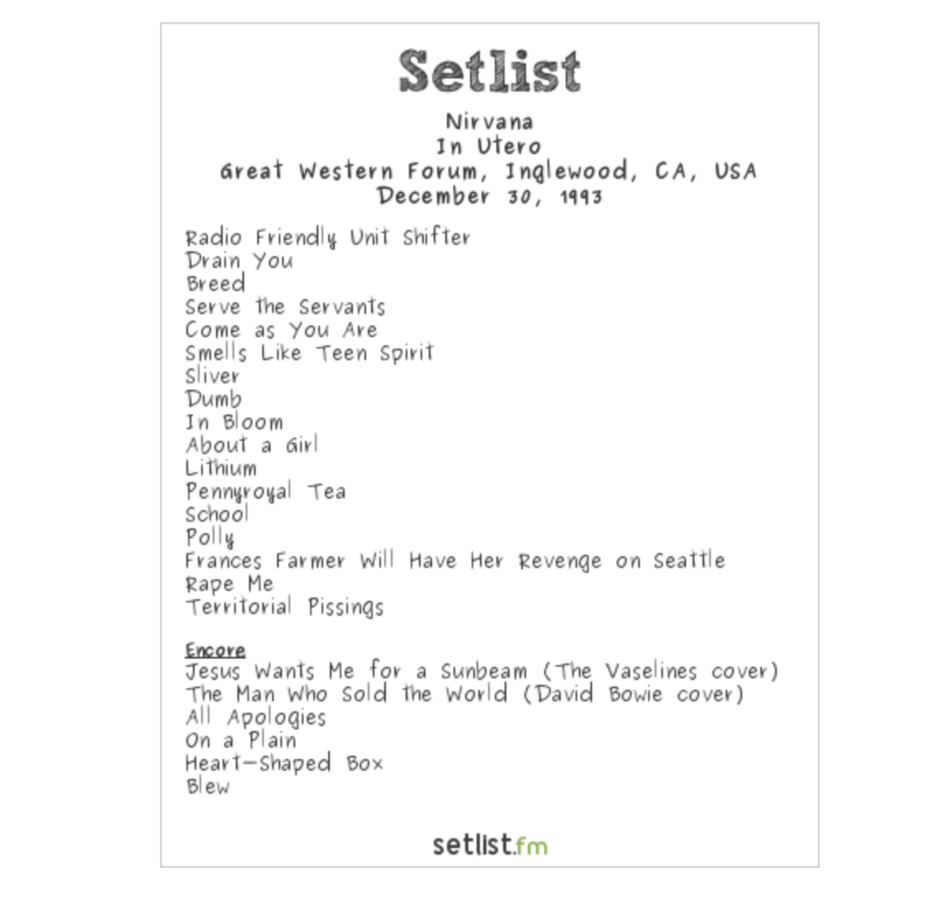 At that show, Sonic Youth guitarist Thurston Moore said it was the last time he'd see Kurt Cobain, but he “seemed very content. He was having fun playing the gig, especially in L.A., because Eddie Van Halen was there.” he wrote in Rolling Stone.
