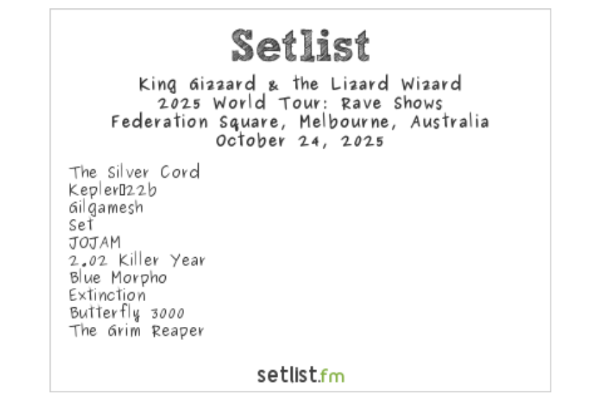 Hometown heroes King Gizzard & the Lizard Wizard turned Melbourne's Federation Square into a two-hour public plaza groove on Friday (10/24), for the first stop of their 2025 World Tour: Rave Shows.