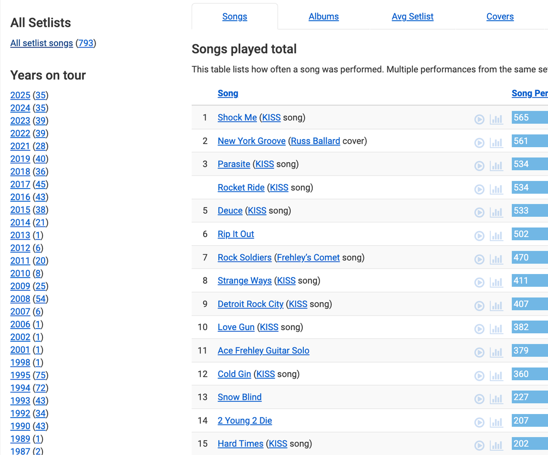 What's interesting about Ace's solo career is according to our database, the 74 year-old rocker performed more in the last decade of his life than the years after he left KISS.