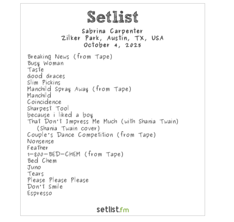 Sabrina Carpenter brewed up more than just espresso when she headlined Austin City Limits, serving an impressive country-kissed set that left Zilker Park buzzing on Saturday (10/4, good buddy).