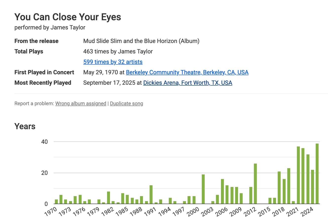 "I wrote it in a hotel room in Albuquerque, New Mexico," James Taylor said in 2007 about the lullaby "You Can Close Your Eyes" that he wrote in 1970 and released the following year.