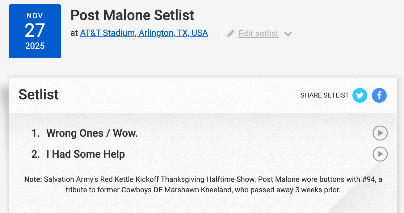 "I'm from Texas. I grew up a Cowboys fan and have been watching this halftime show for years," Posty said when his performance was announced.