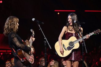 (Coldplay appeared on the screen via a live broadcast from their show in Gothenburg prior to song)